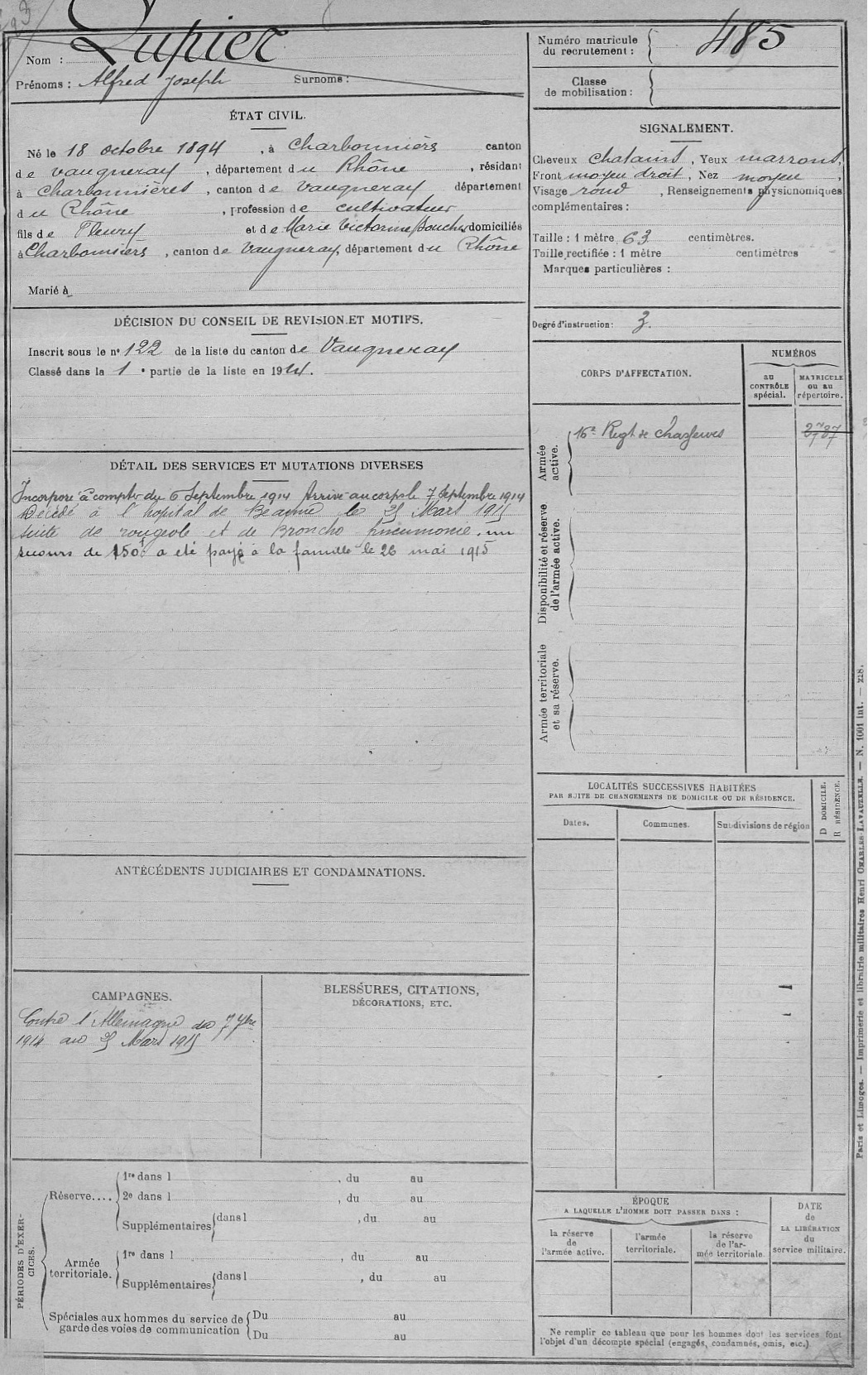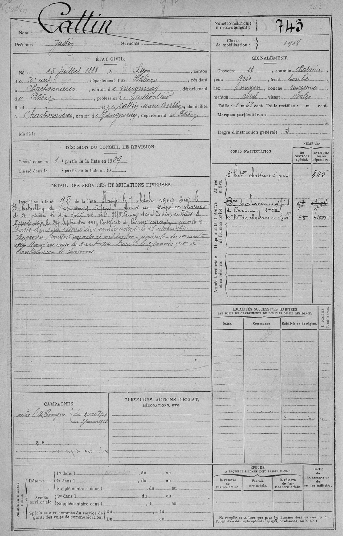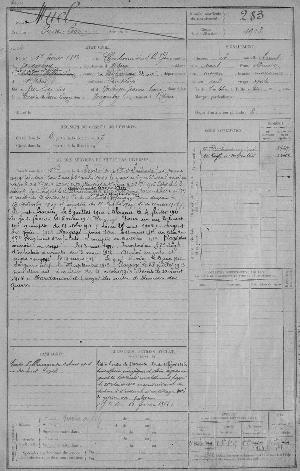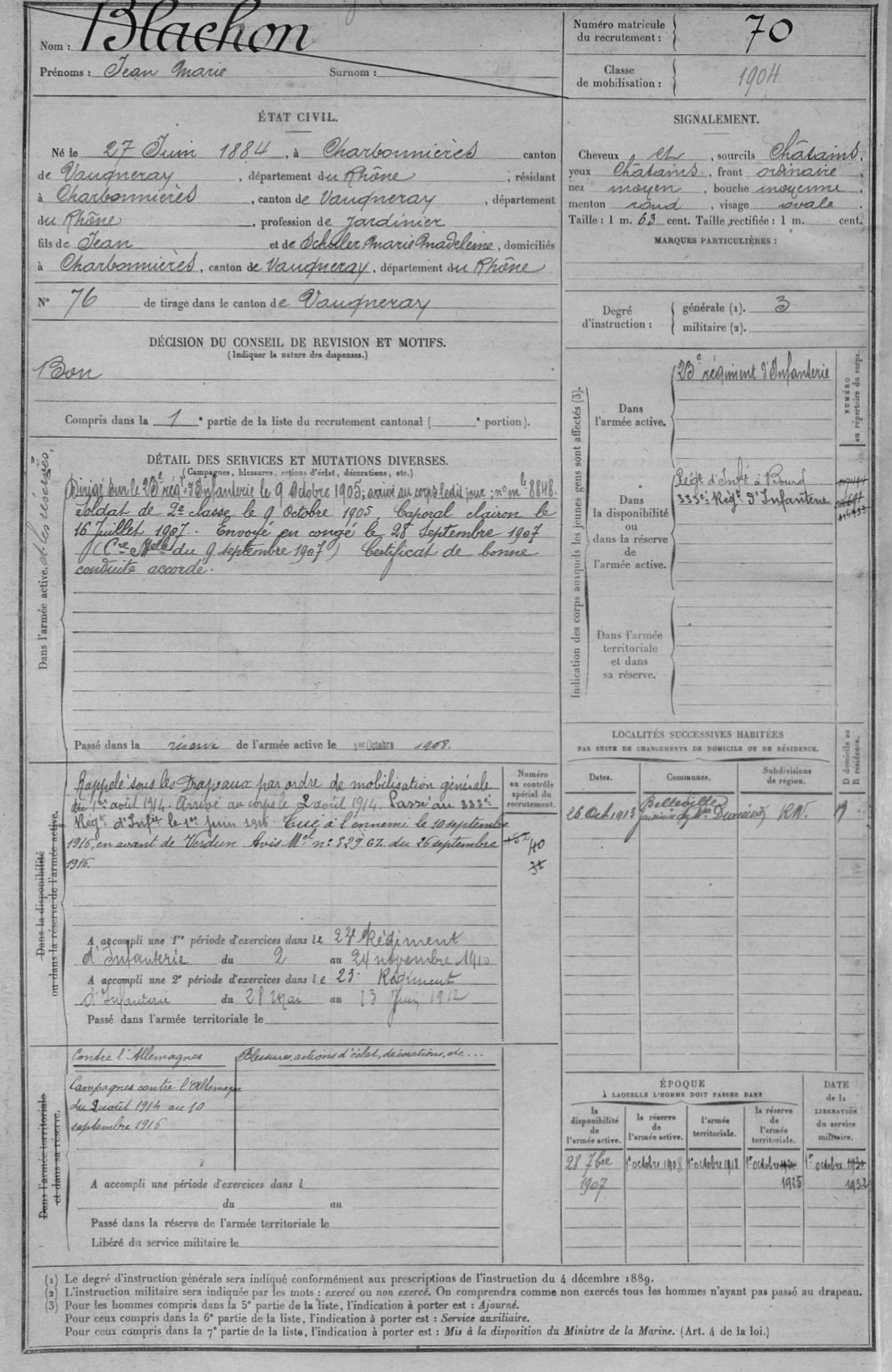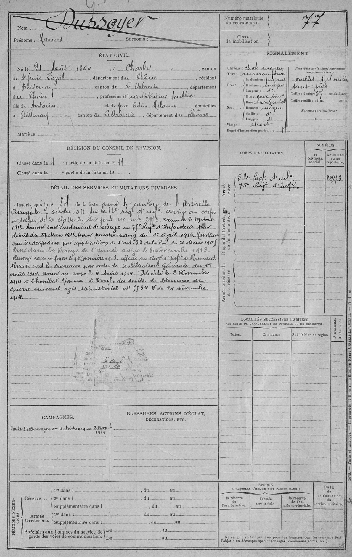 Guerre de 14-18 à Charbonnières – Fiches matricules