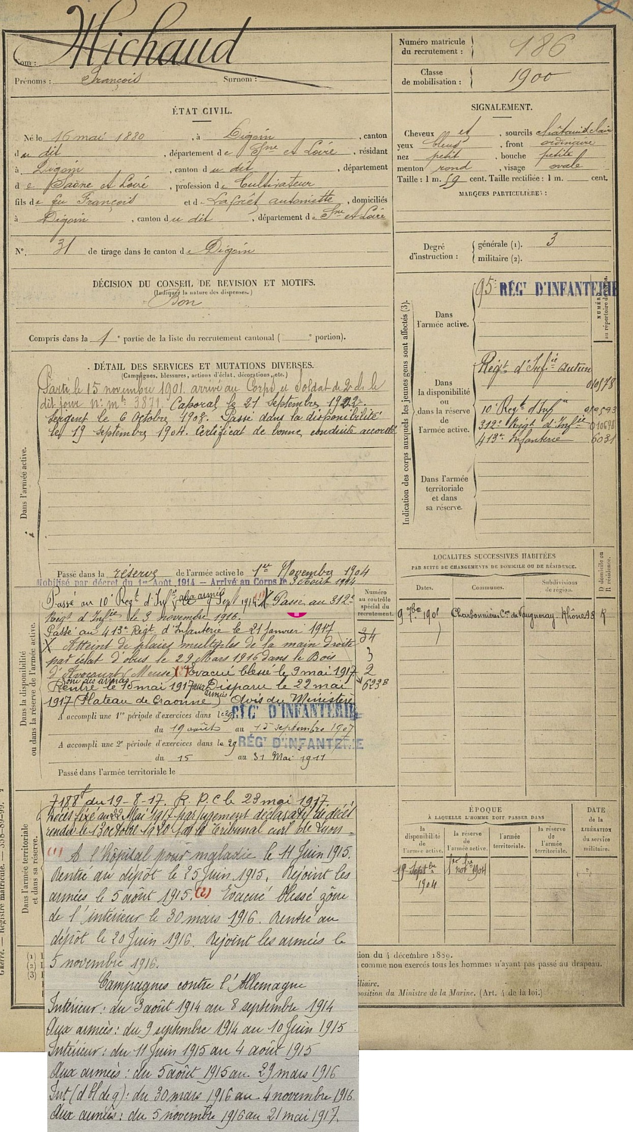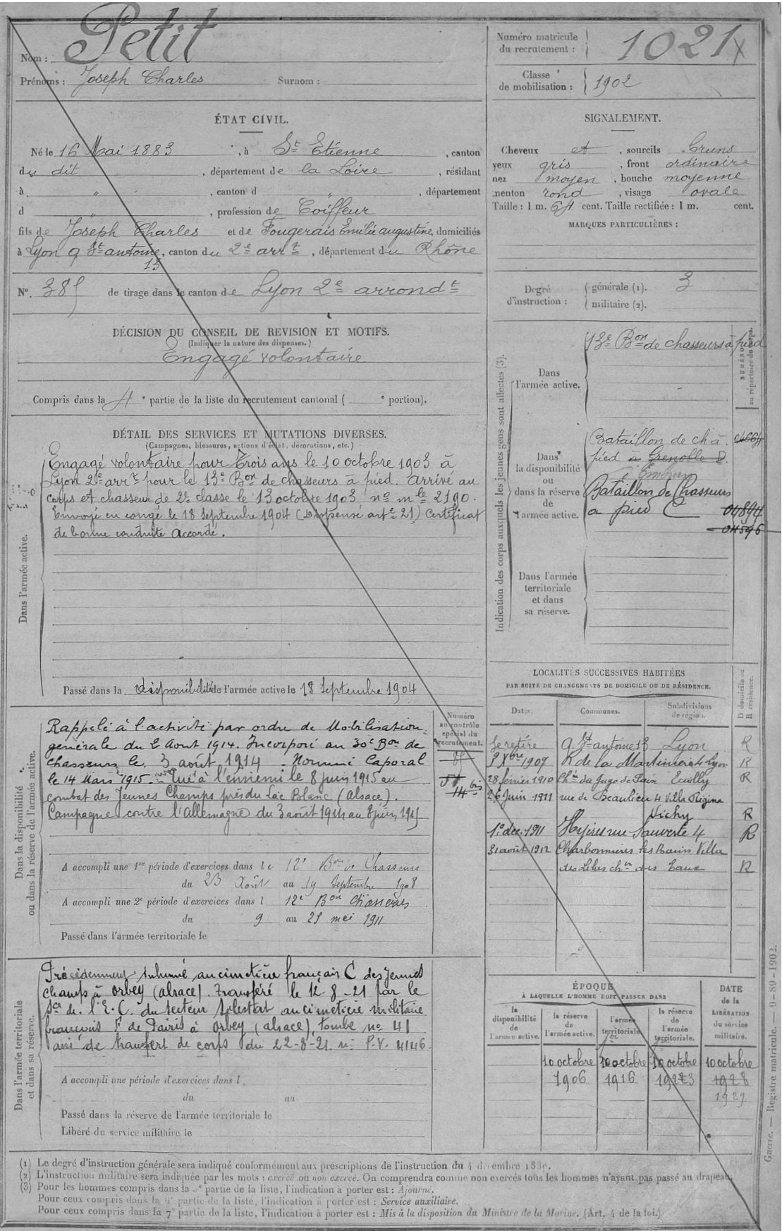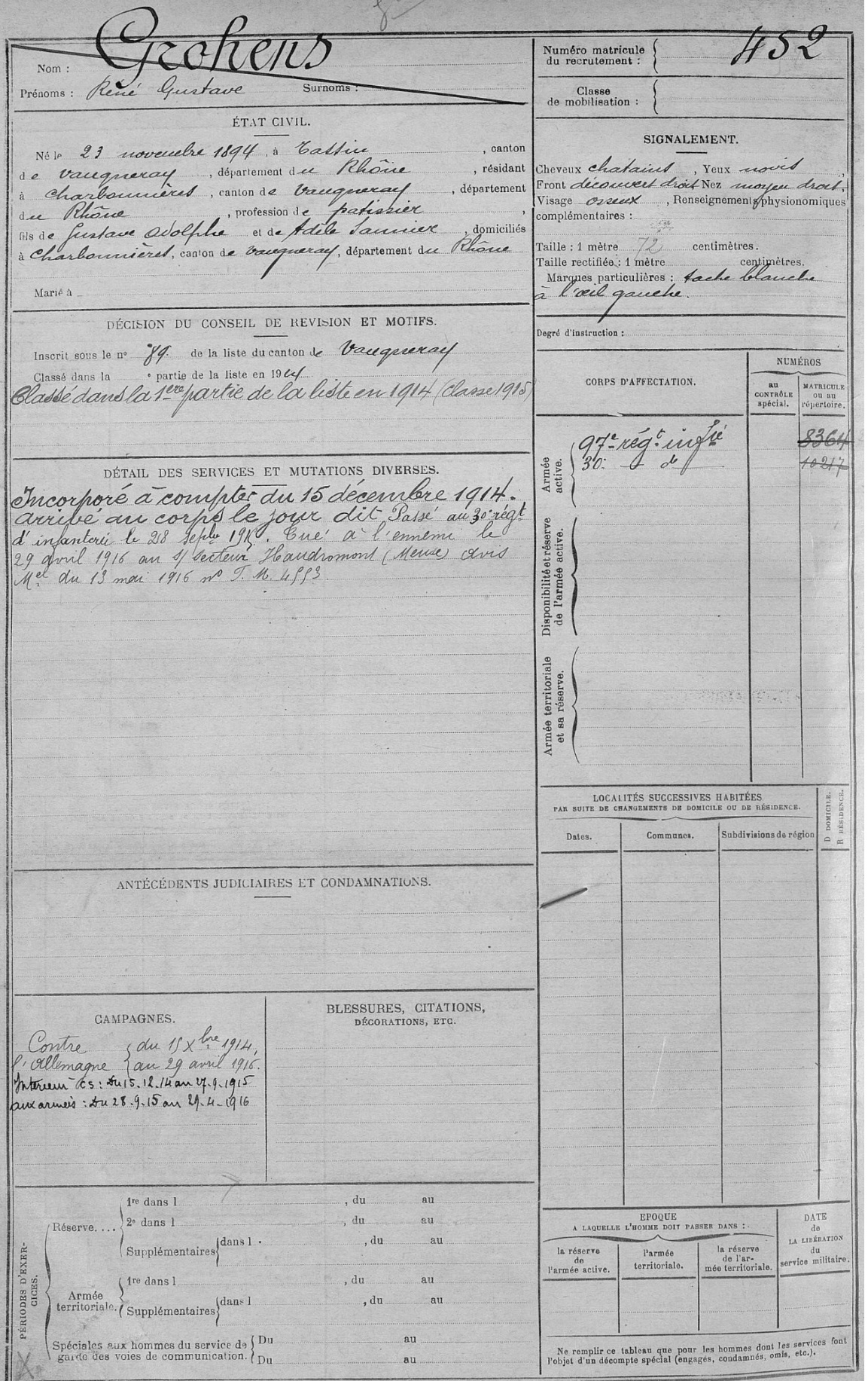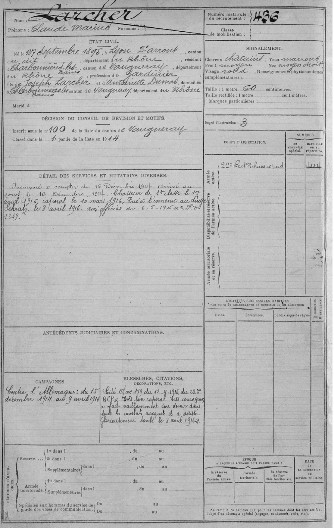 Guerre de 14-18 à Charbonnières – Fiches matricules