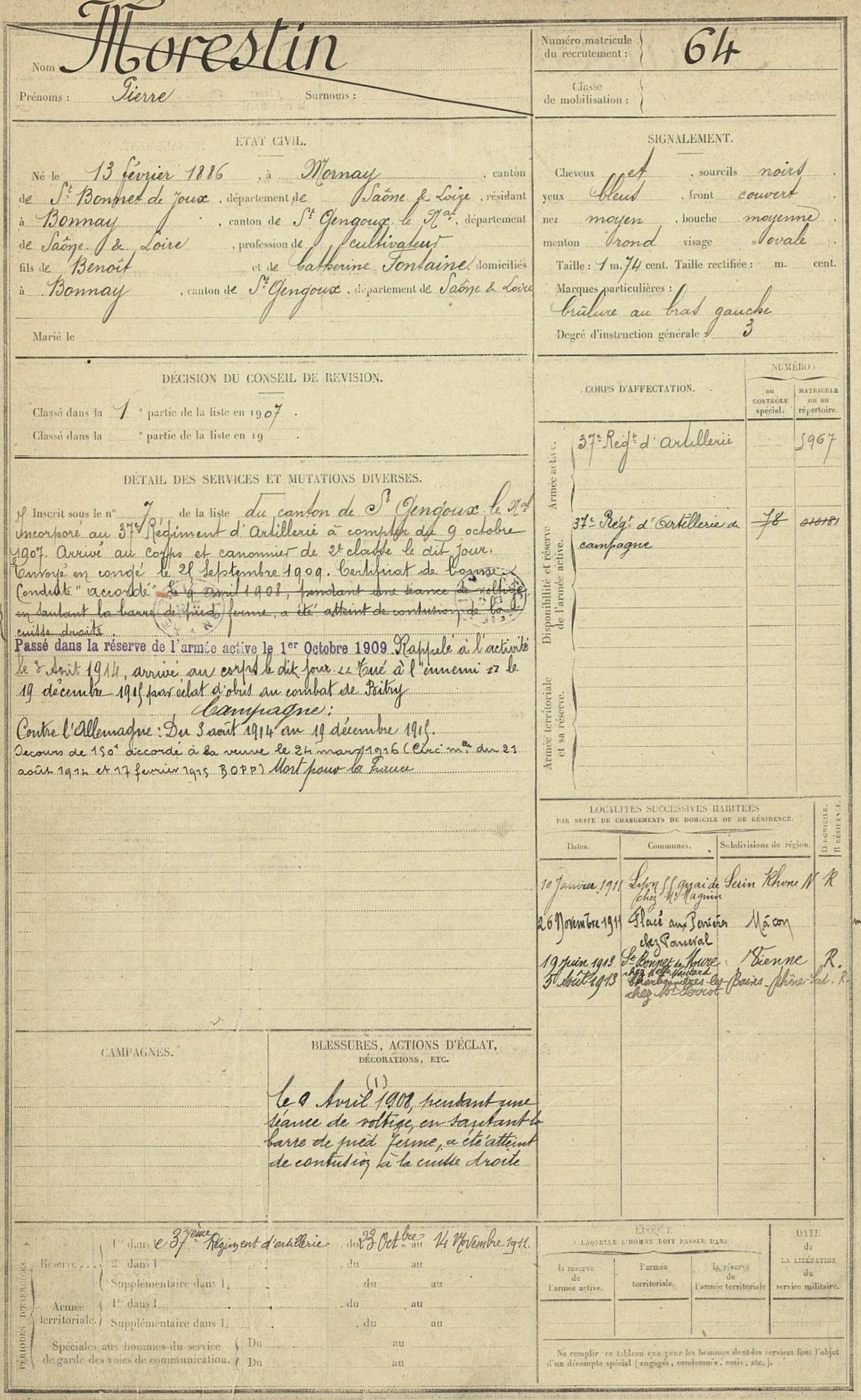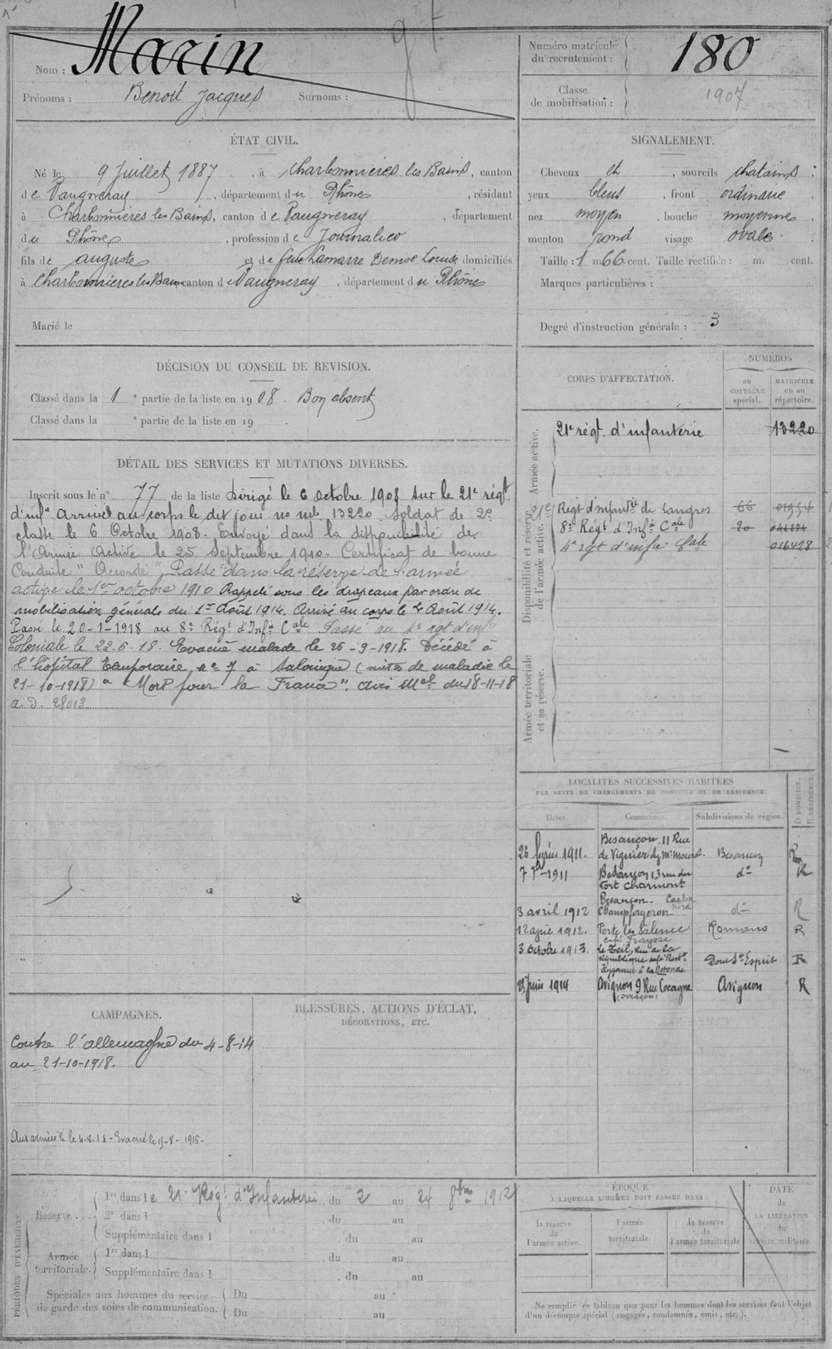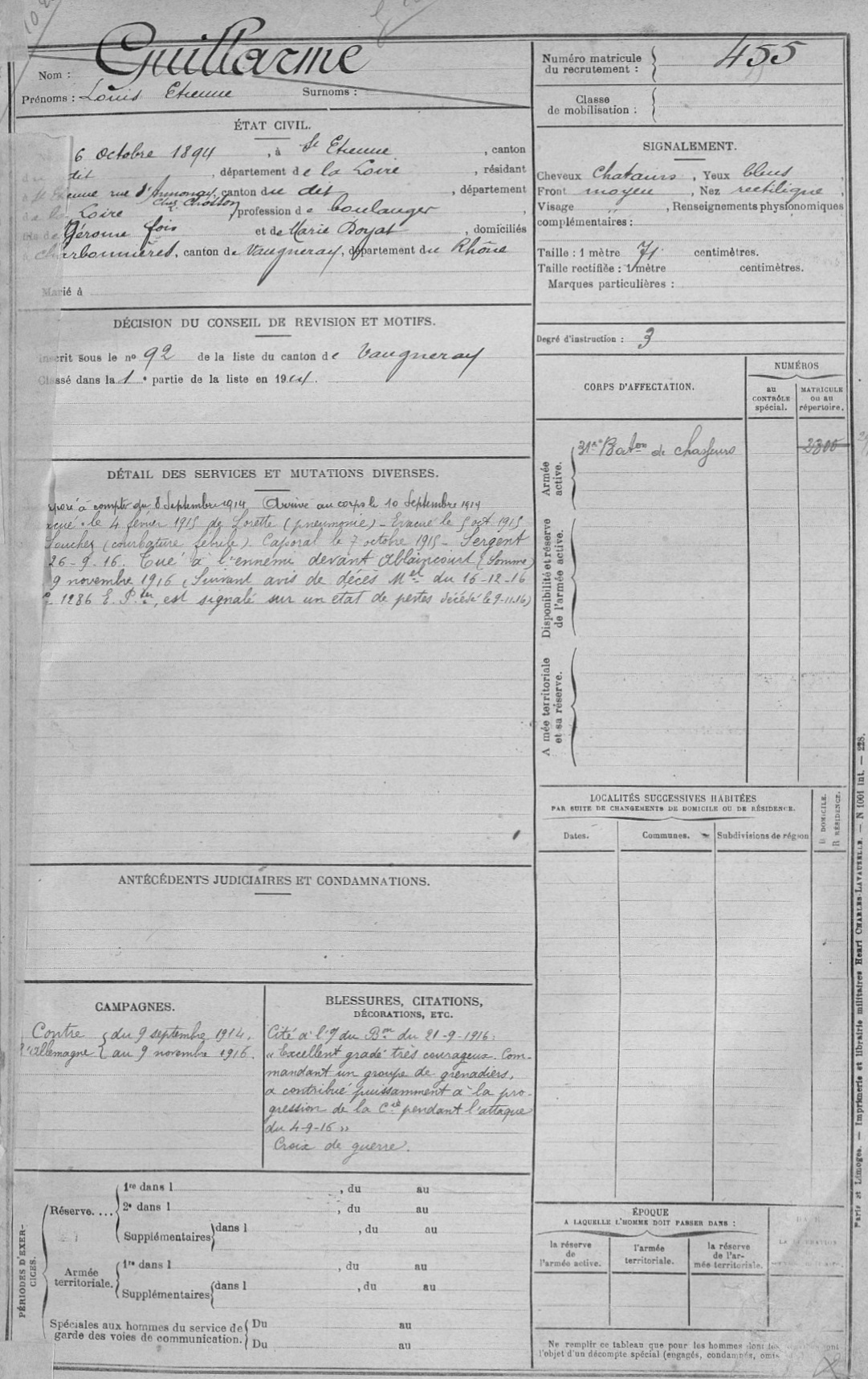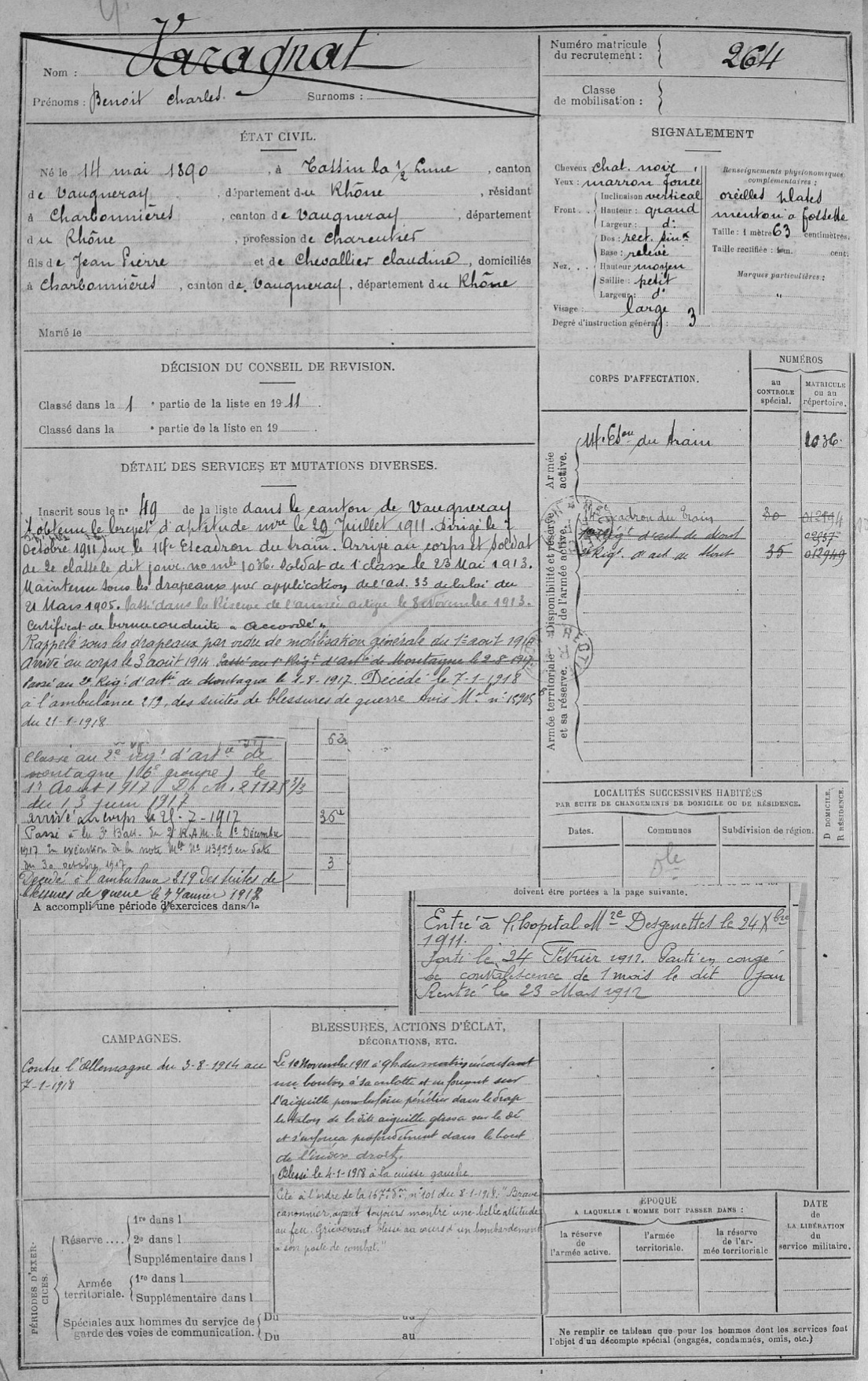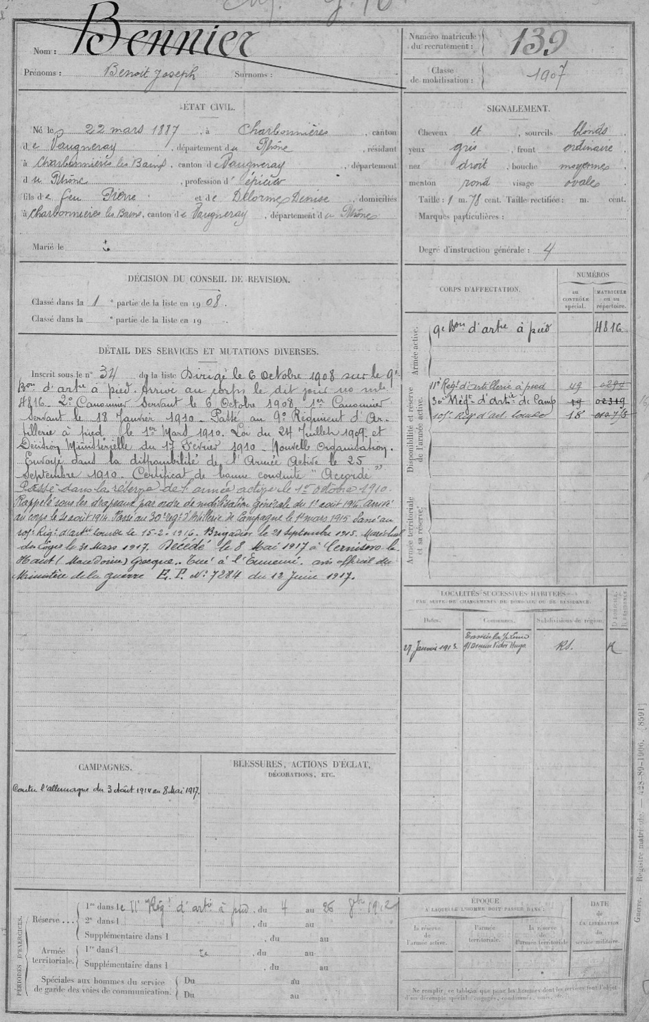 Guerre de 14-18 à Charbonnières – Fiches matricules
