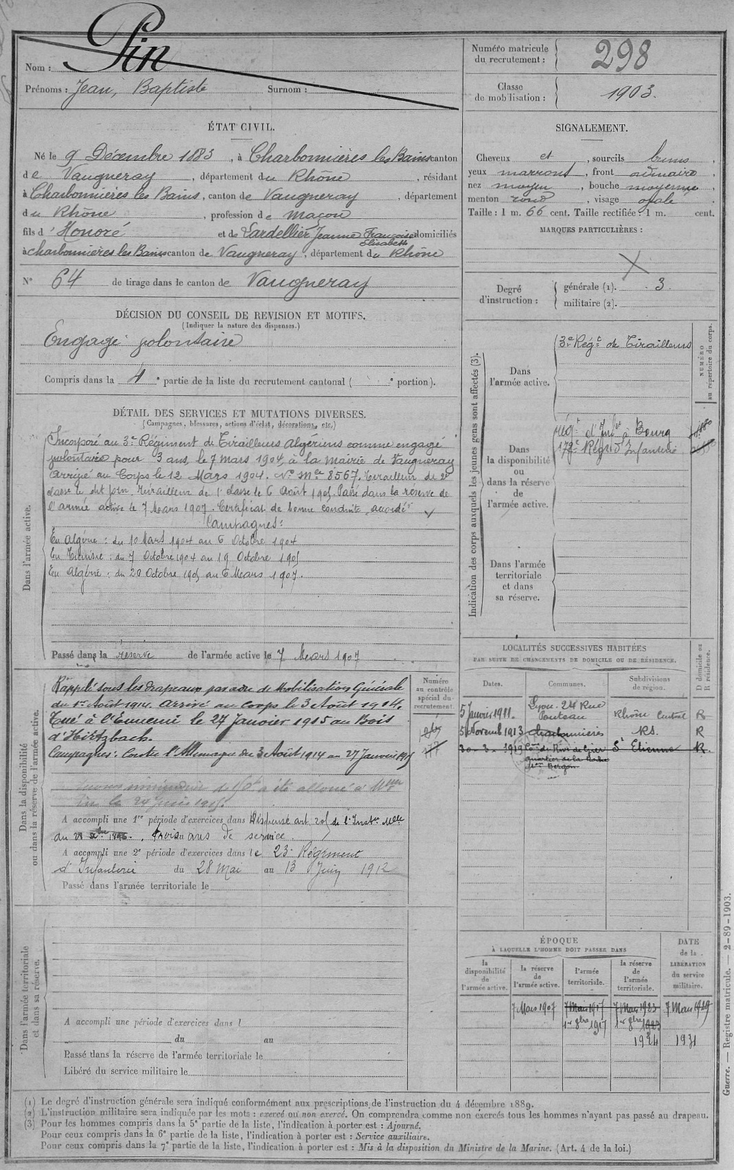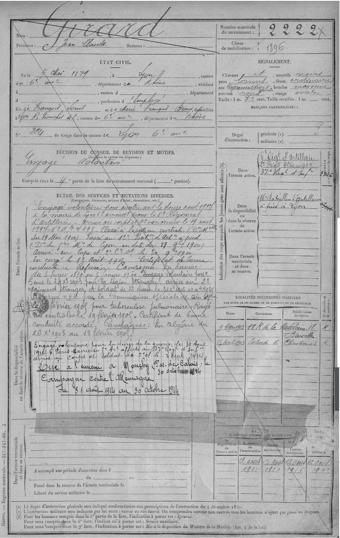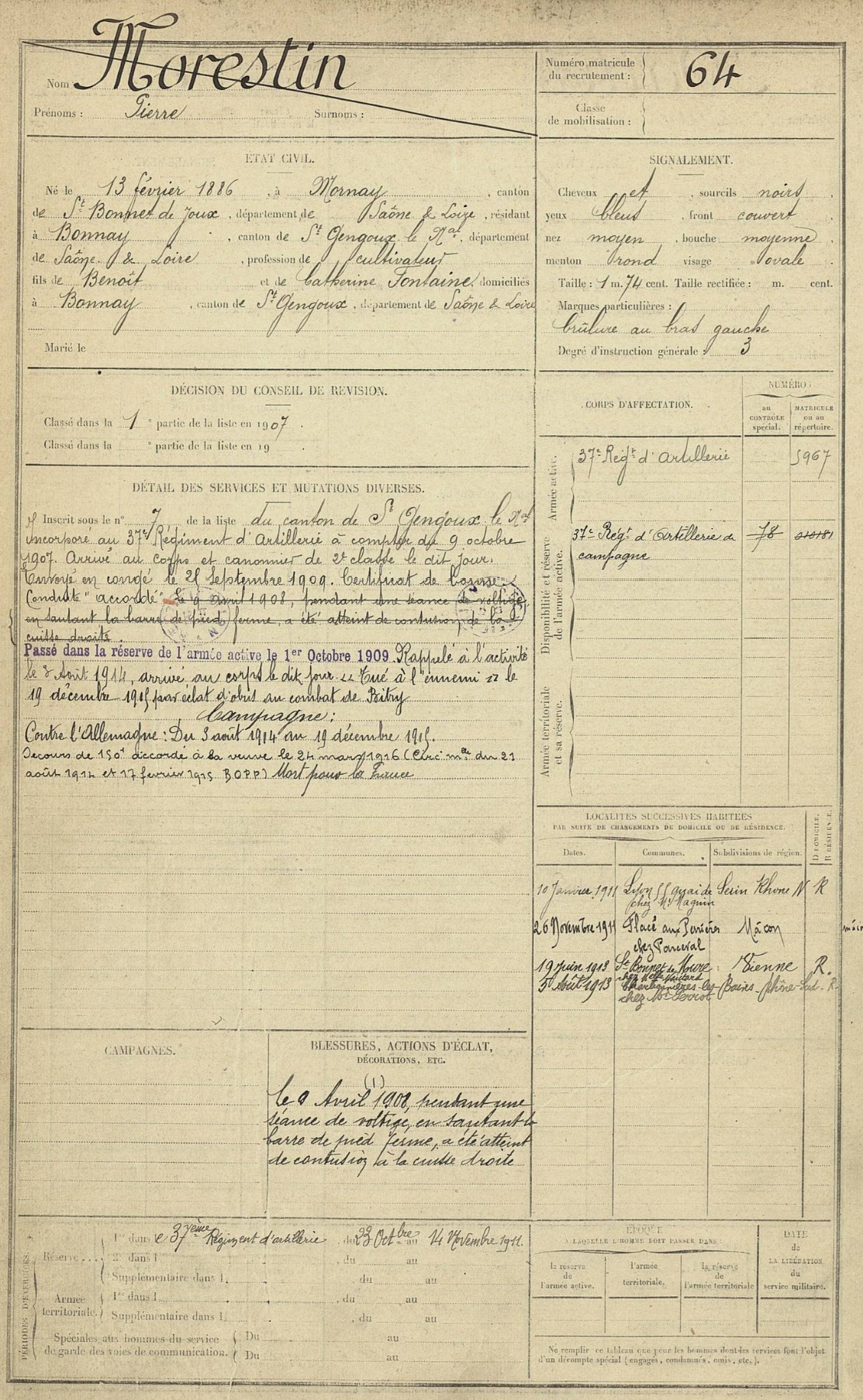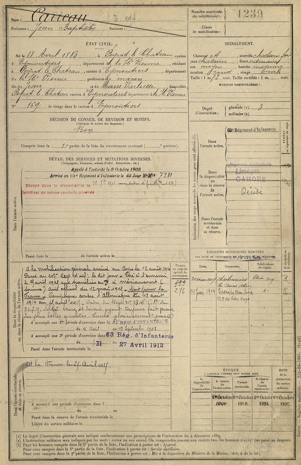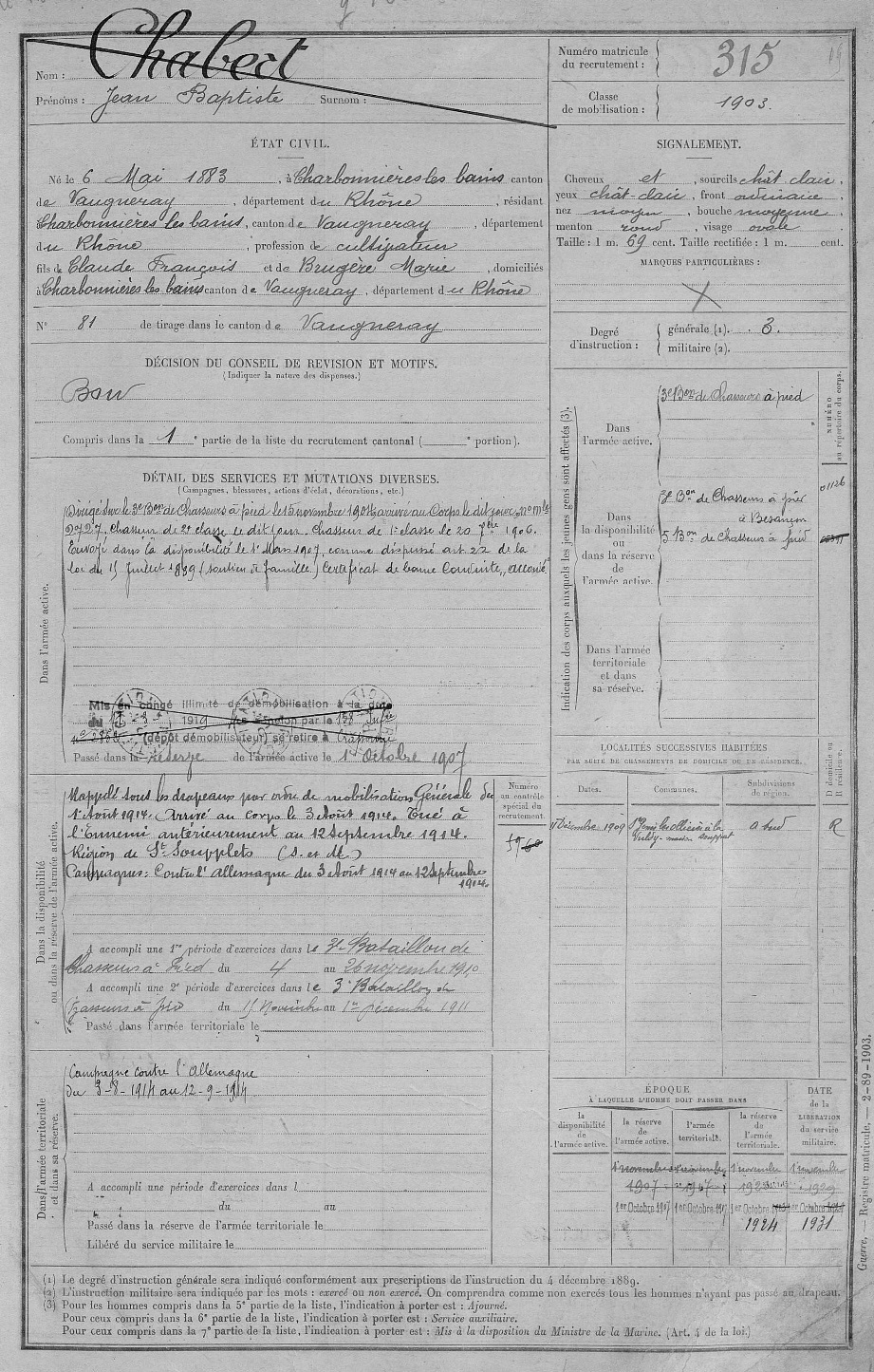 Guerre de 14-18 à Charbonnières – Fiches matricules