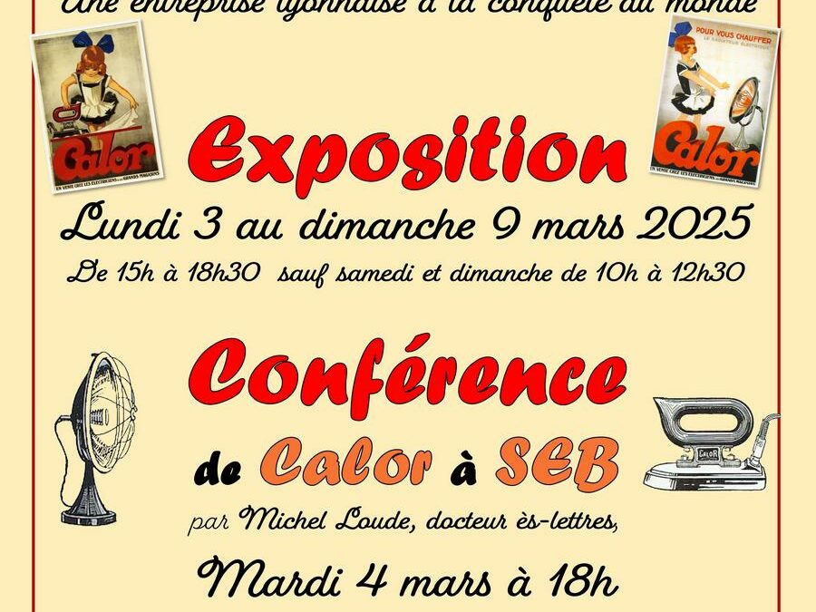 Exposition : Calor Une entreprise lyonnaise à la conquête du monde. Du lundi 3 au dimanche 9 mars 2025 de 15h à 18h30 sauf samedi et dimanche de 10h à 12h30